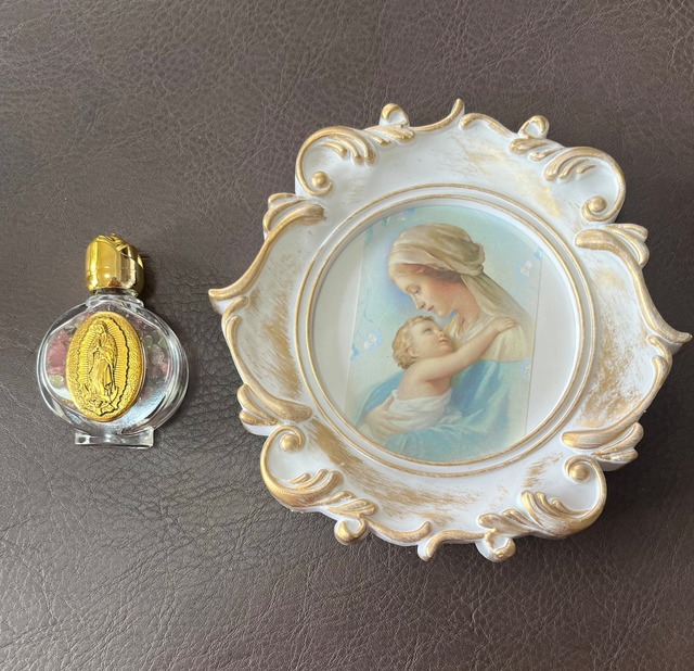 「マリア様のガラスボトル入りさざれ」ゴールドボトル 優しい微笑みで見守ってくださるマリア様のガラスボトルに、天然石のさざれを詰め込みました。 こちらは爽やかなグリーンが美しい ペリドット。 このまま飾って、あるいはお皿などに出してお使いいただくなど、インテリアやお守りとして、心を癒やしてくれる存在です。 さらに、イエス様を抱いたマリア様の美しい姿が描かれたミニカードのフレーム もセットになっています。 デスクやお部屋に飾って、日々の祈りや癒しのひとときをお楽しみください。 〈ぺリドット(Peridot)〉 「癒し・希望・ポジティブエネルギー」の石。マイナスの感情を手放し、前向きな気持ちを引き出してくれるとされています。 ・心を明るく保ちたい方 ・人間関係を円滑にしたい方 ・新しい一歩を踏み出したい方におすすめです。 〈セット内容〉 マリア様ガラスボトル(ペリドット) マリア様ミニカードフレーム 価格:送料込み 2,000円 大切な方への贈り物や、ご自身のお守りとしてもぜひどうぞ。 天使の卵女神塾 ホームページ https://tenshinotamago.net/ アメブロ https://ameblo.jp/angels-2009/ 非