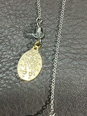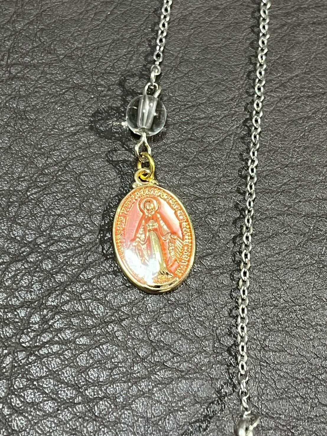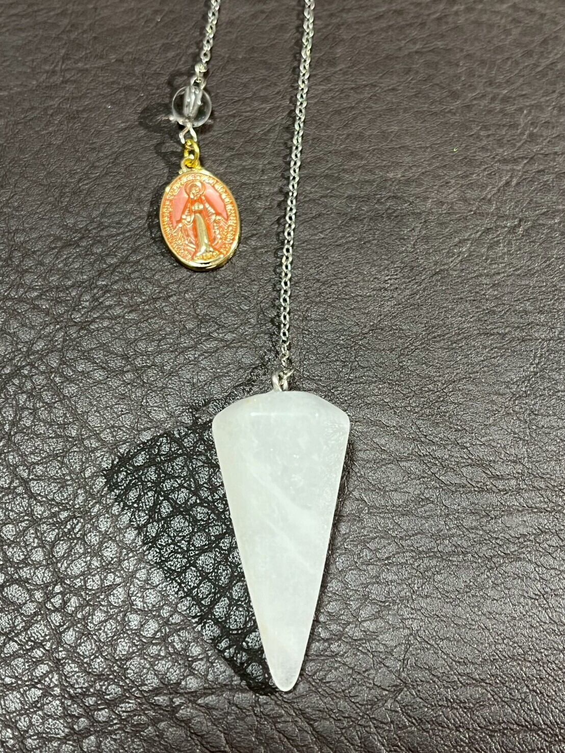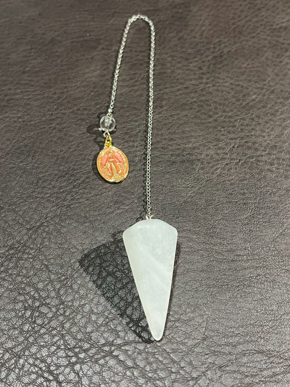 清らかな波動を持つ天然石クリスタルのペンデュラムに奇跡のメダイ(不思議なメダイ)を組み合わせた特別なアイテムです。