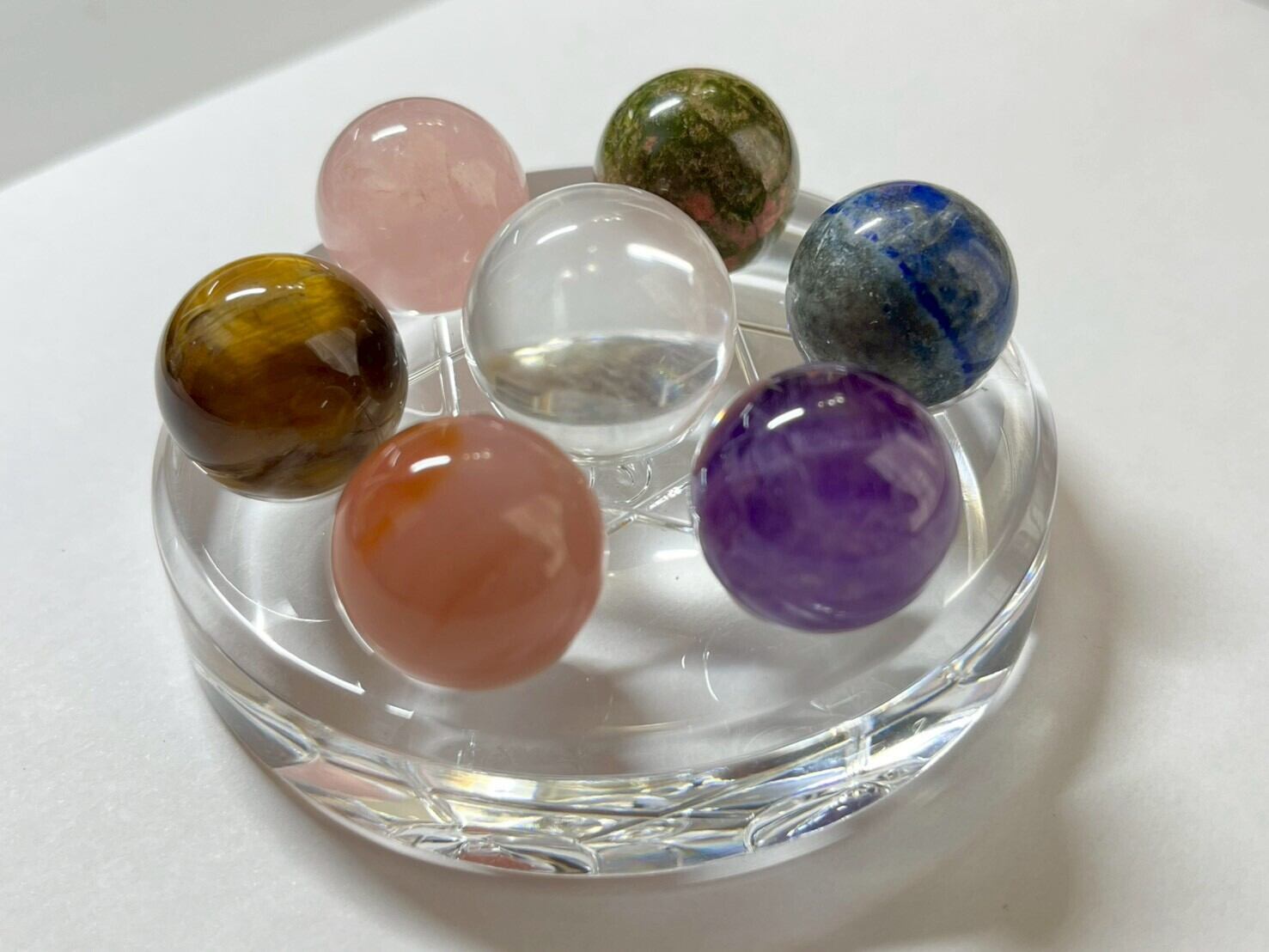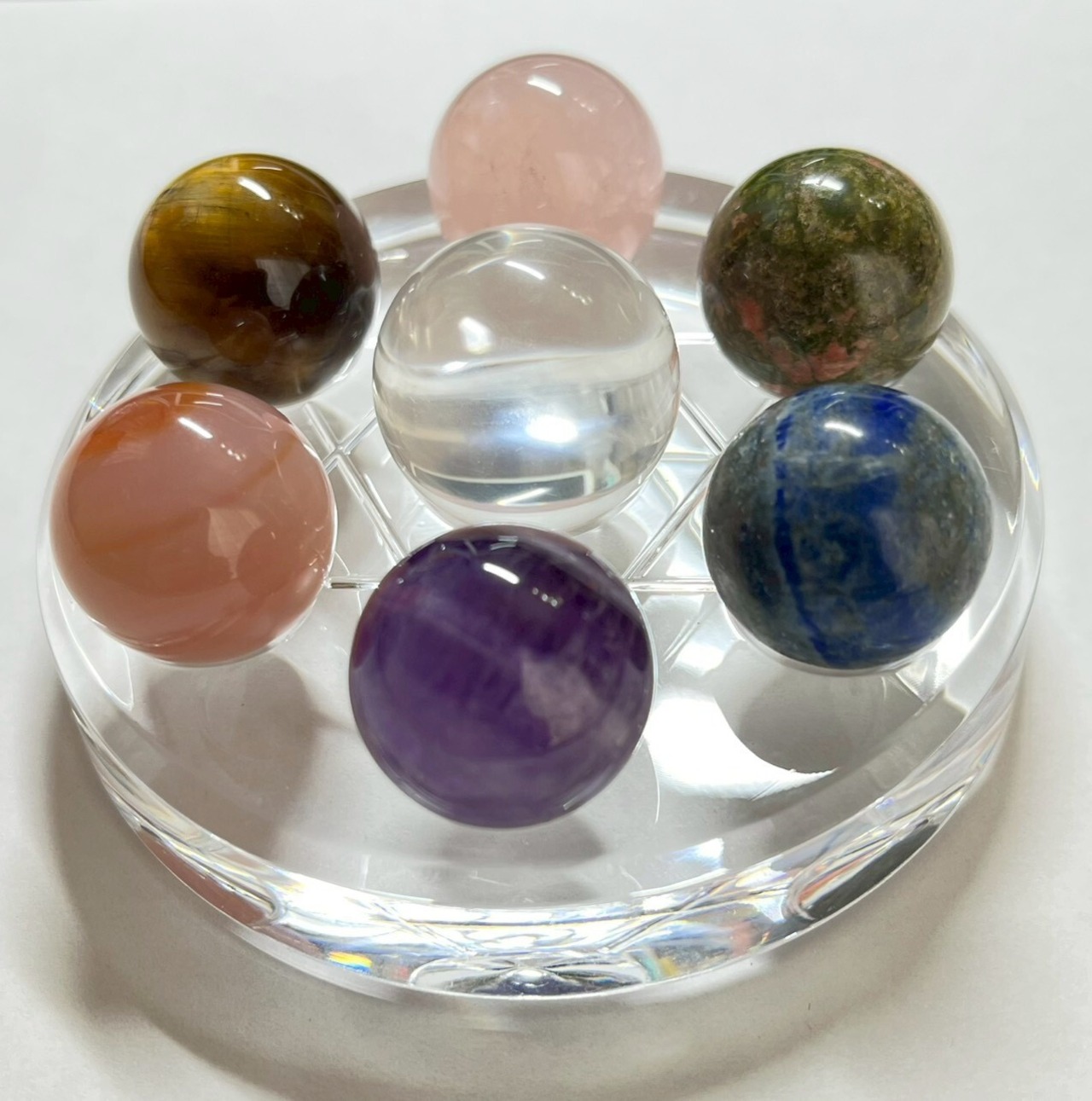 サイズ:水晶のみ2-3㎜、あとは20㎜、七星陣クリア台 80mm