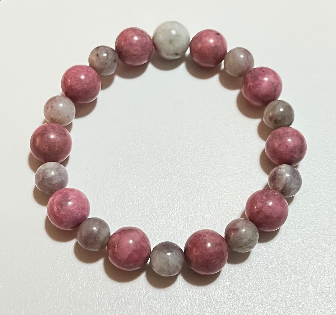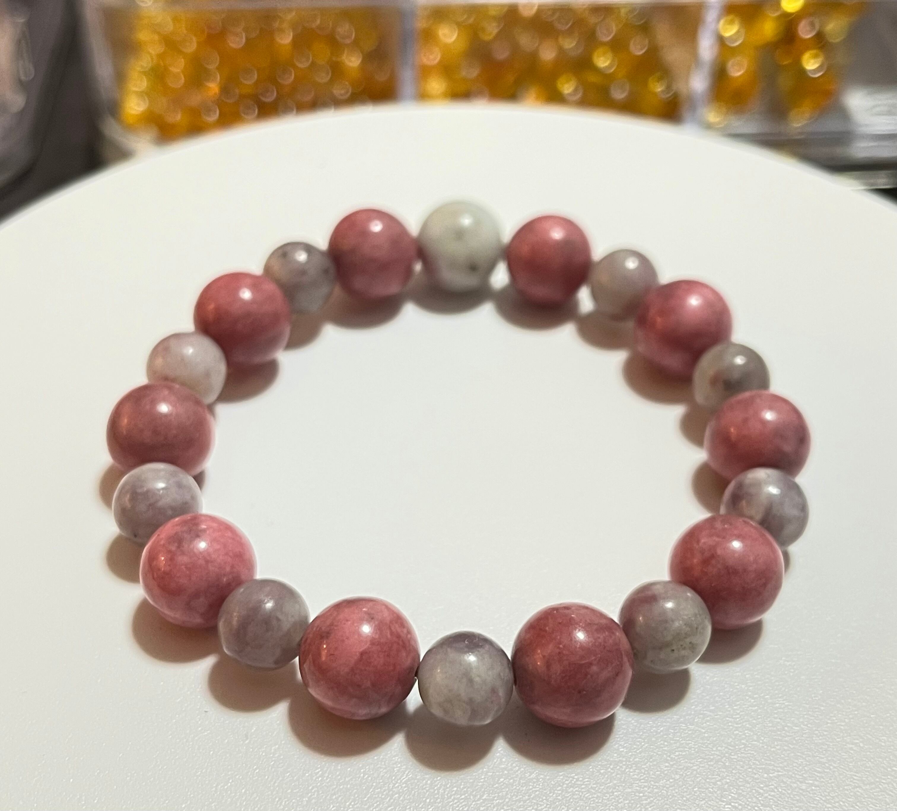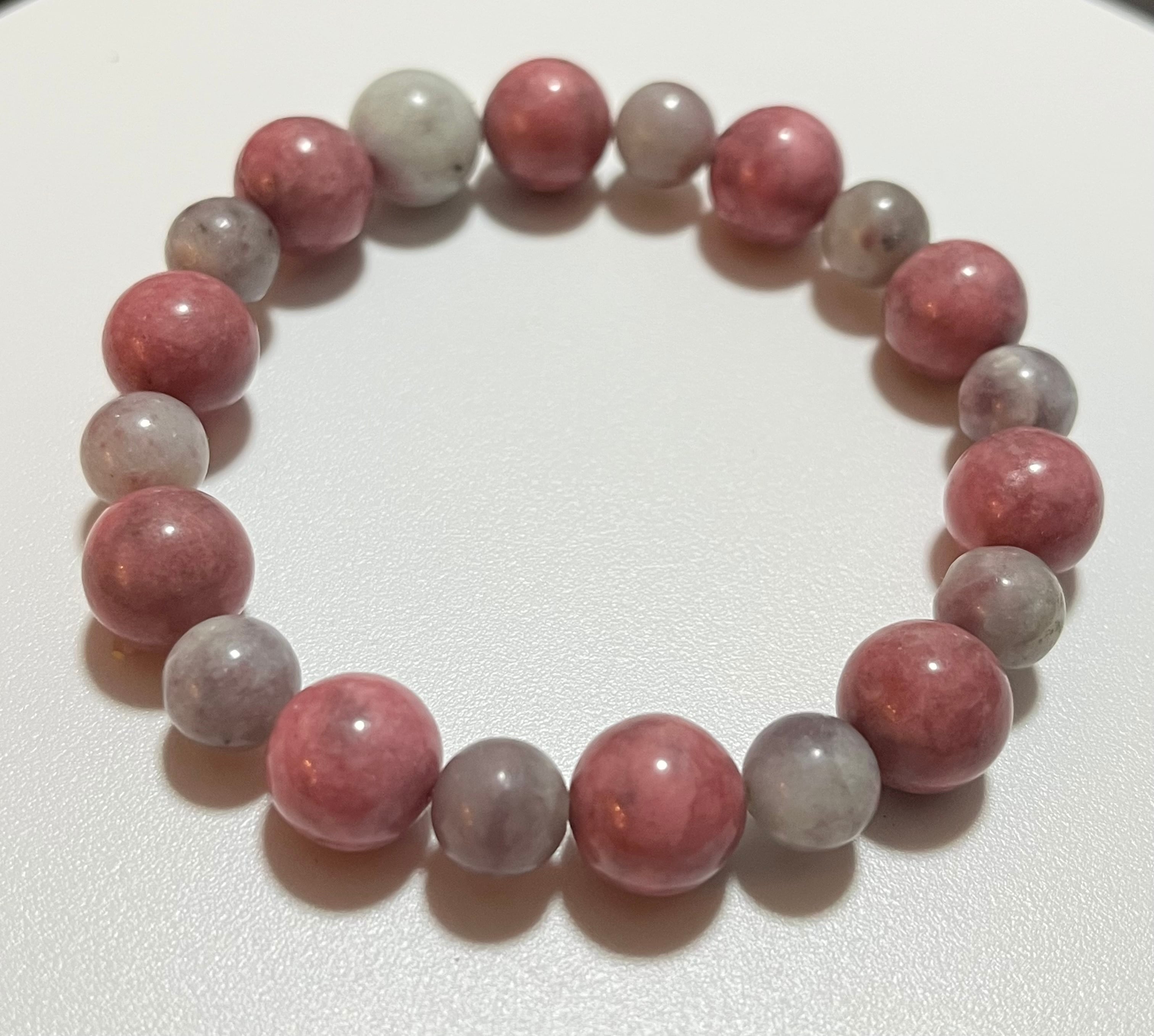 やわらかなピンクと穏やかなグレーが調和する、優しさあふれるブレスレット。