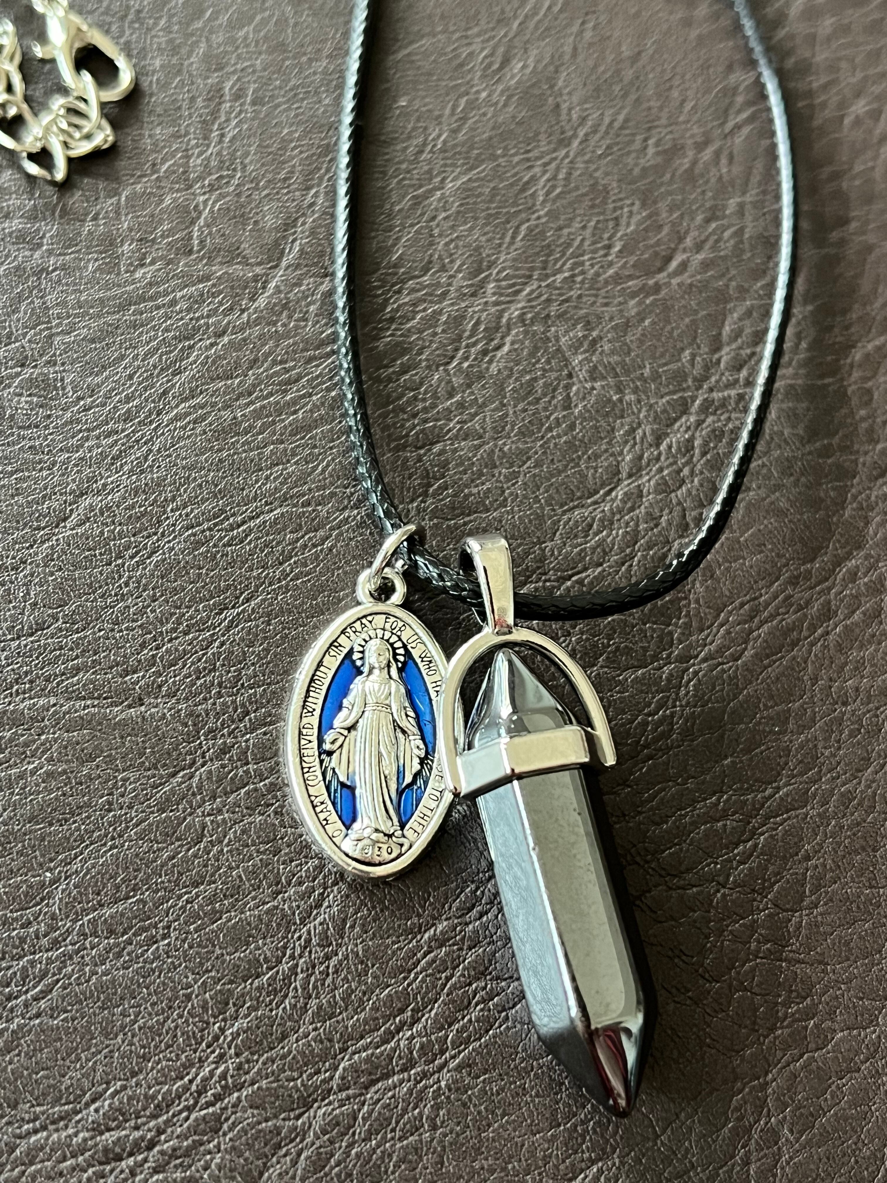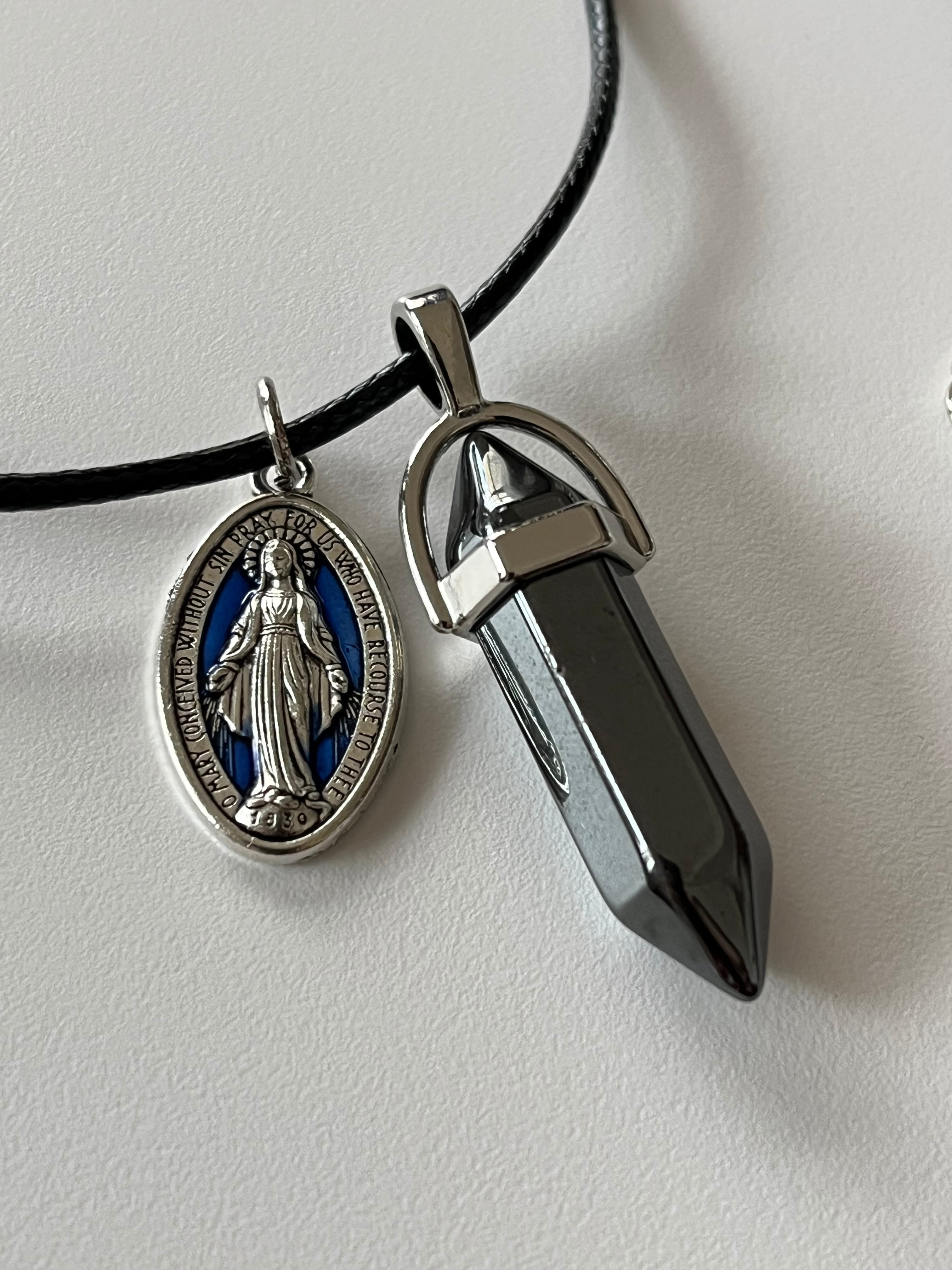 【不思議のメダイ付きヘマタイトネックレス】