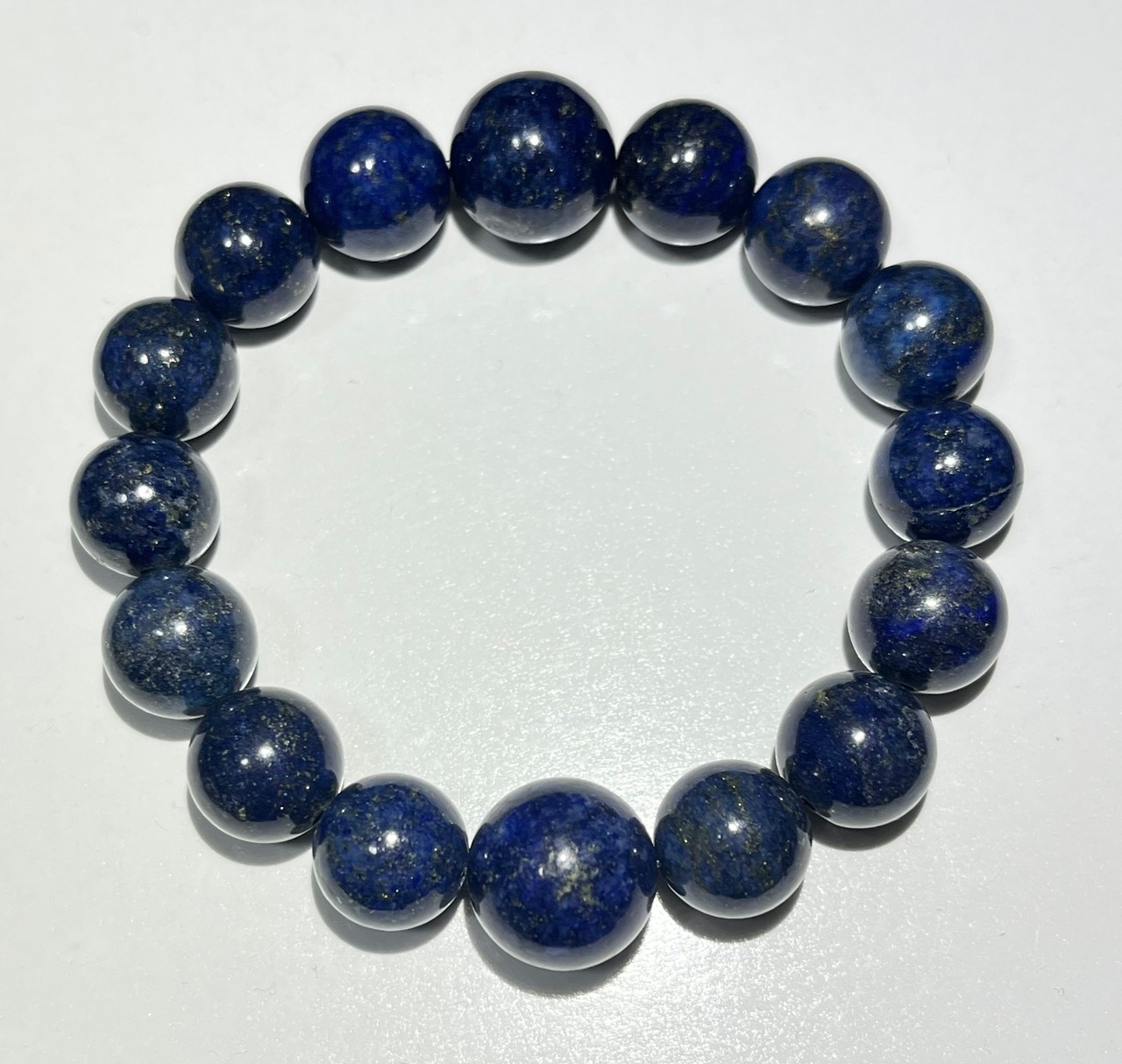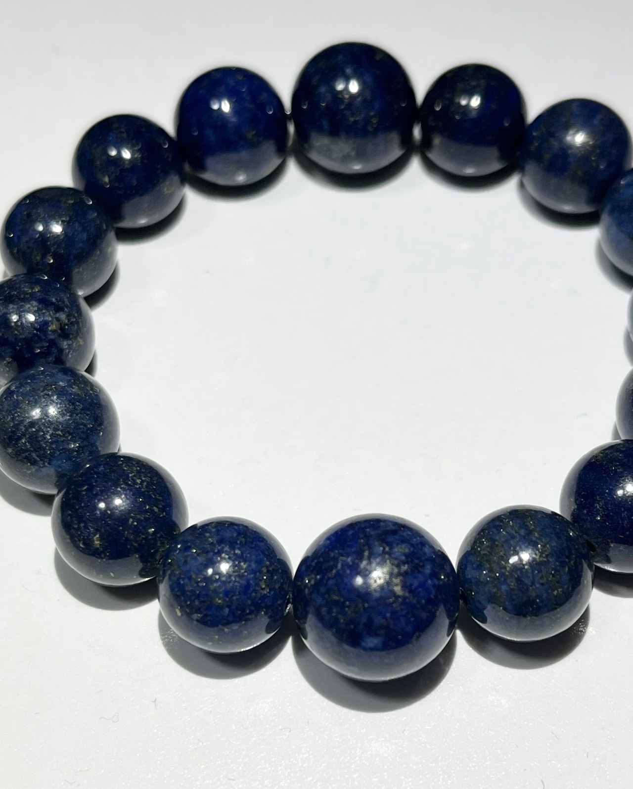 このブレスレットは、深く神秘的な青色と金色の輝きが特徴の天然石を使用した高品質なアクセサリーです。