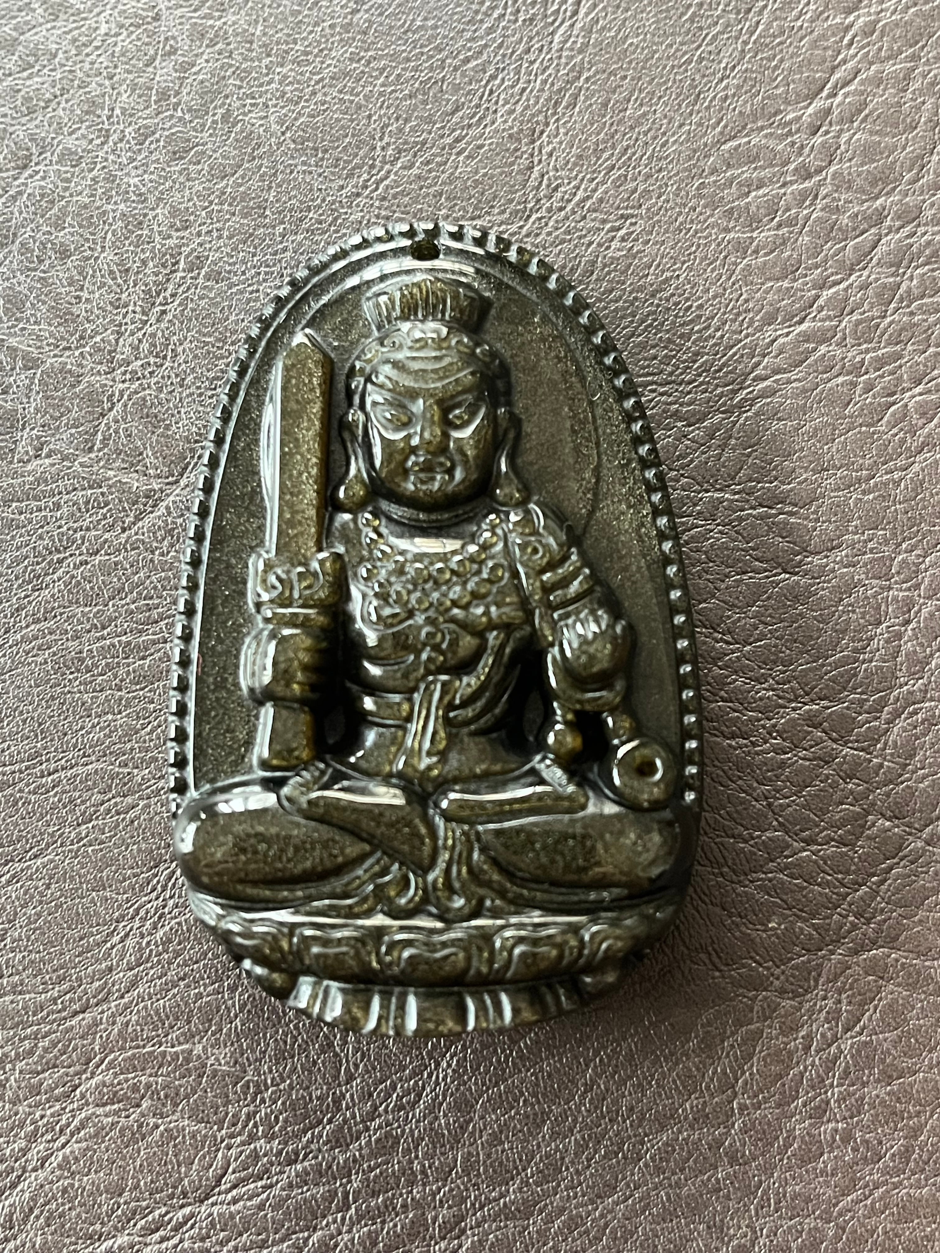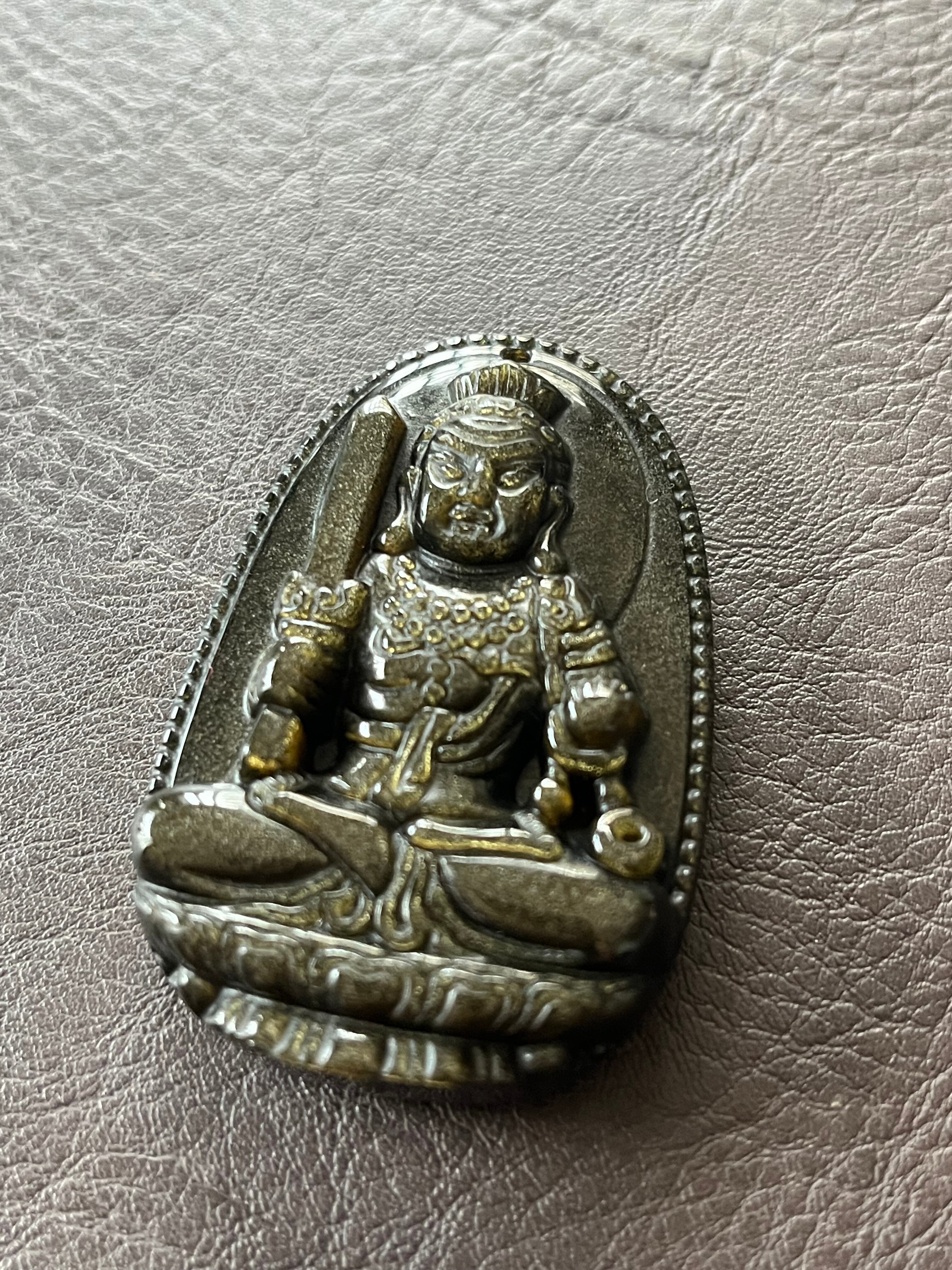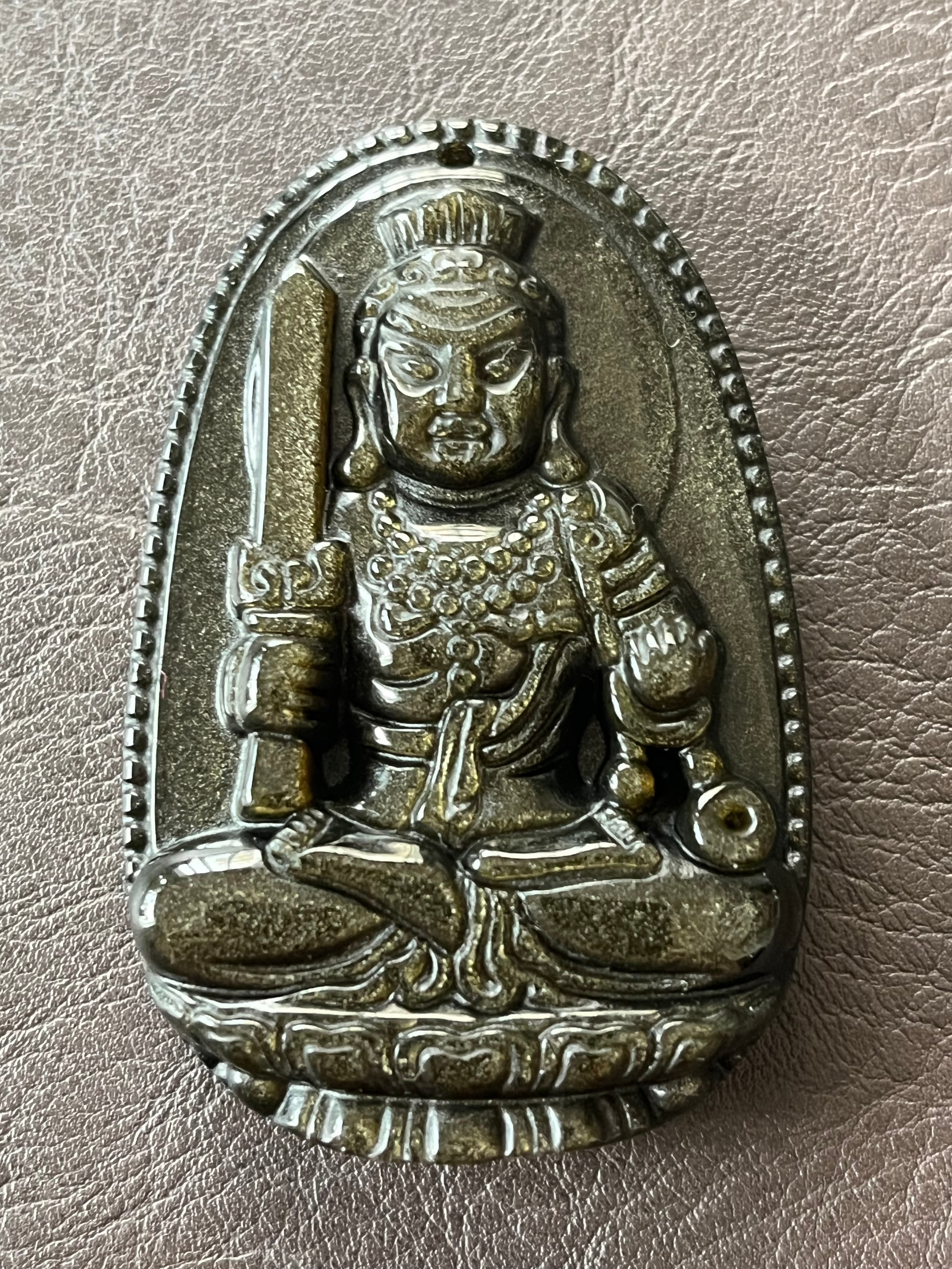 強力な守護と導きを与えてくれる、不動明王が刻まれたゴールドオブシディアンのお守りです。
