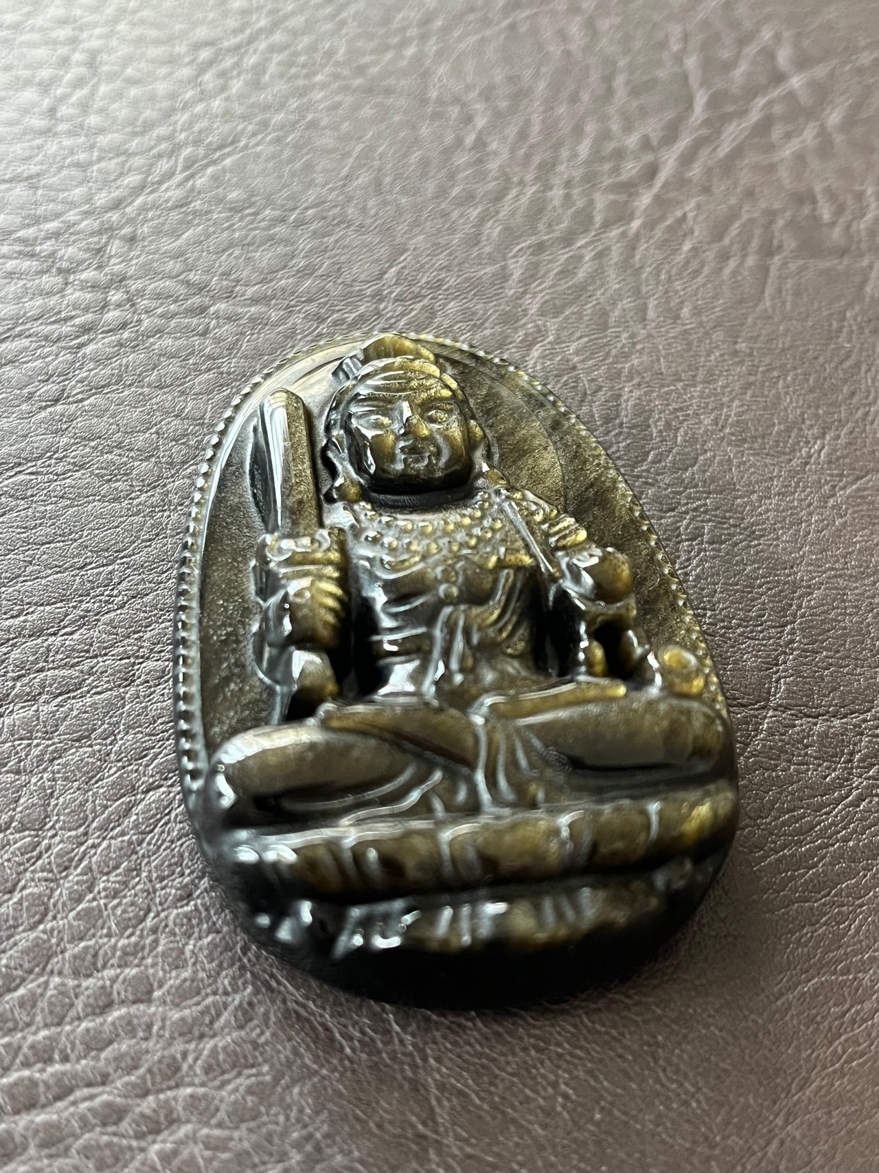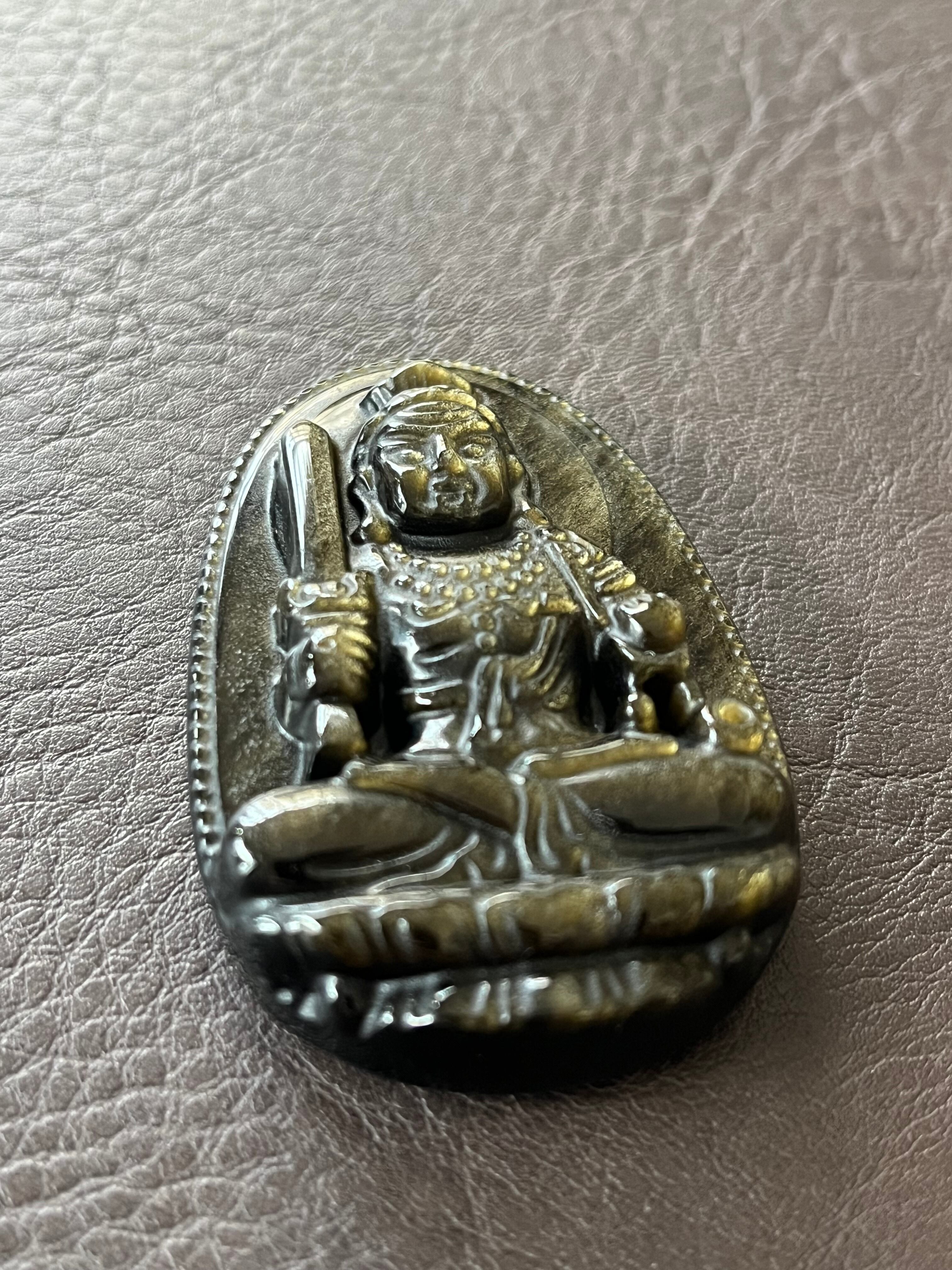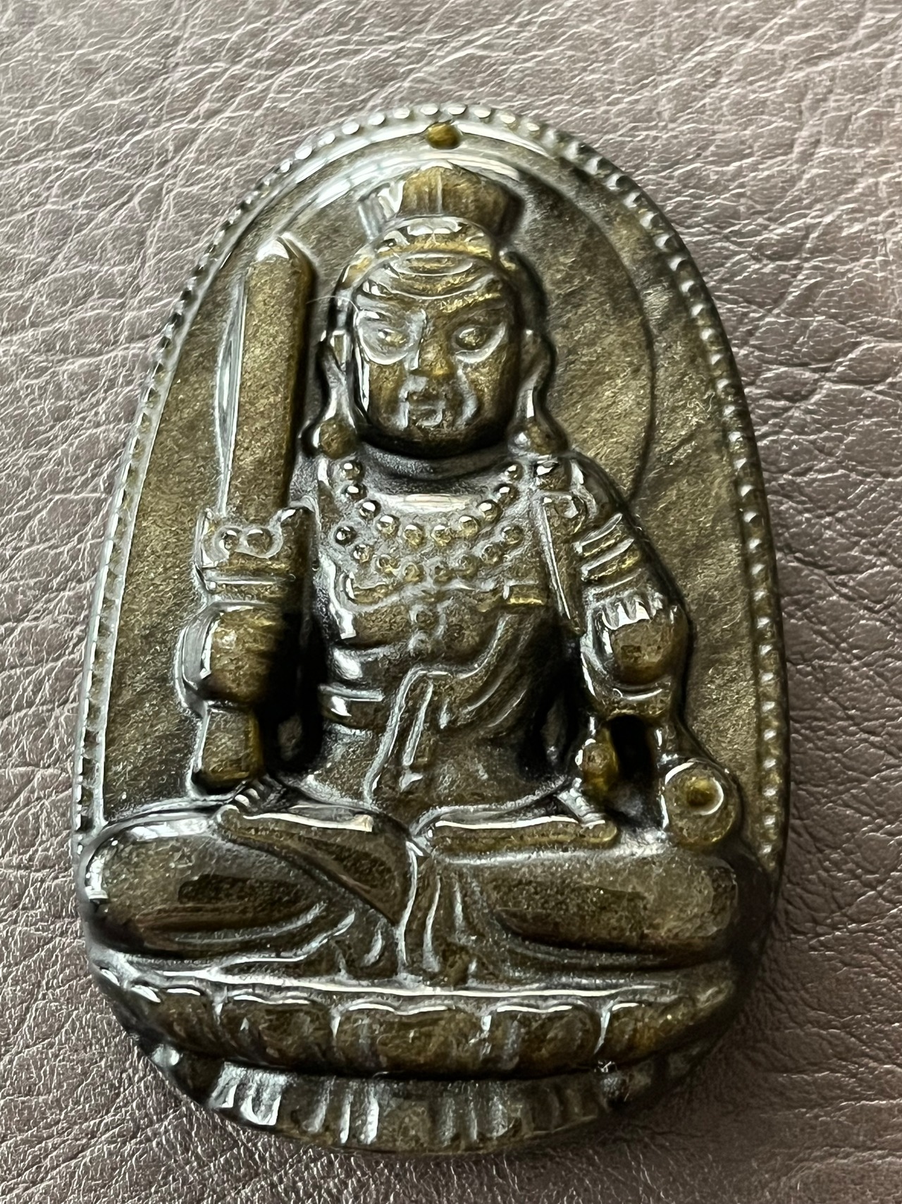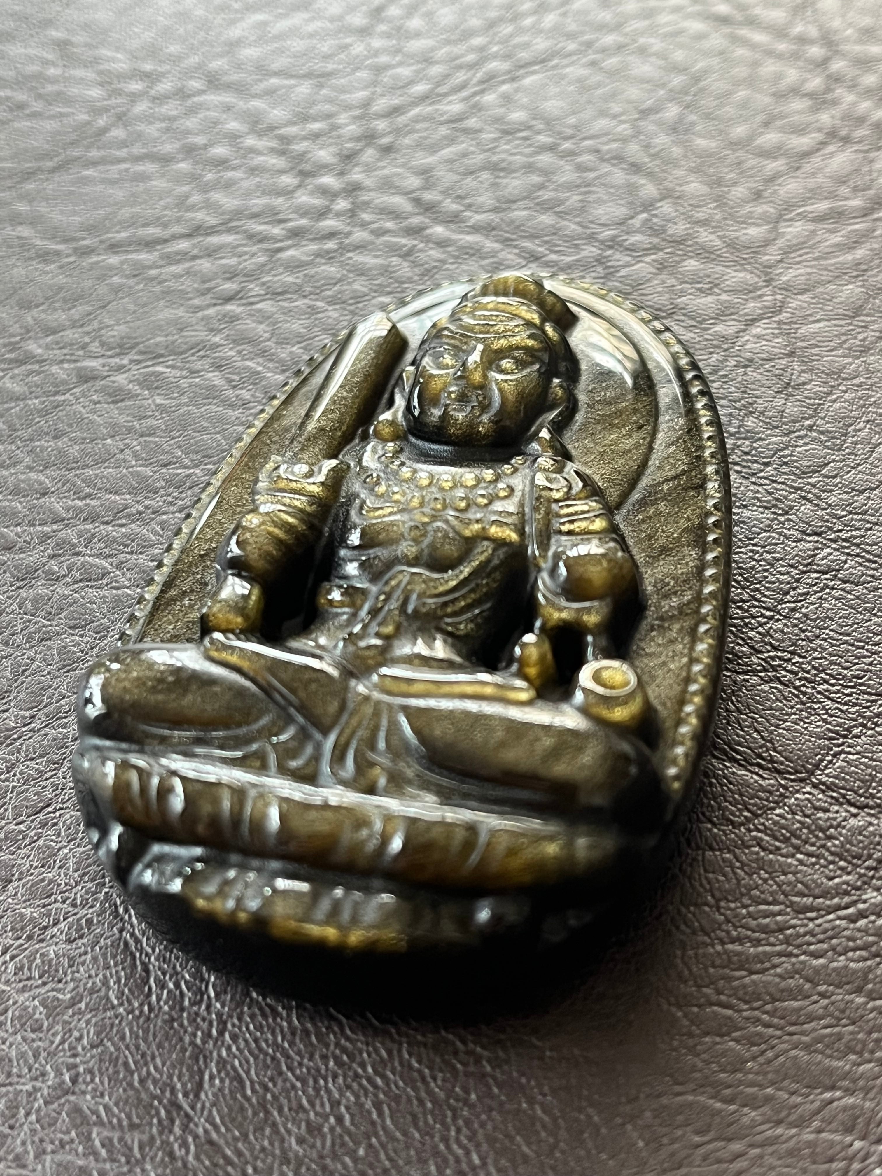 強力な守護と導きを与えてくれる、不動明王が刻まれたゴールドオブシディアンのお守りです。